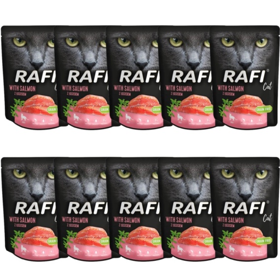 Pełnoporcjowa mokra karma Rafi Cat dla kotów dorosłych wszystkich ras z łososiem 10x300g.