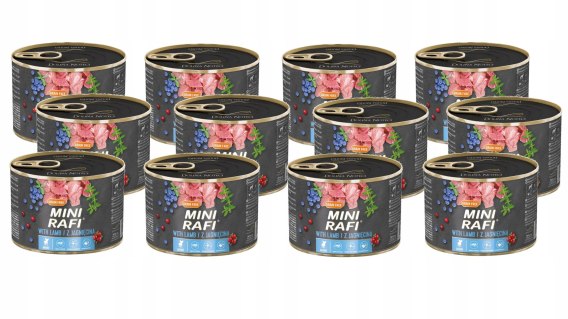 Mokra karma dla psa Mini Rafi z jagnięciną puszki 12×185g